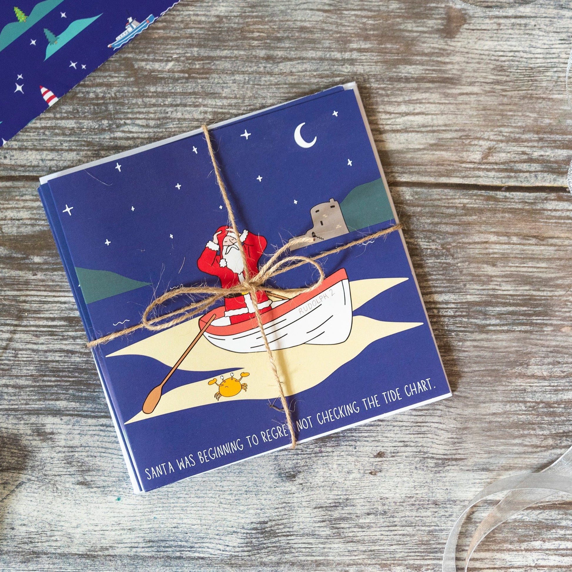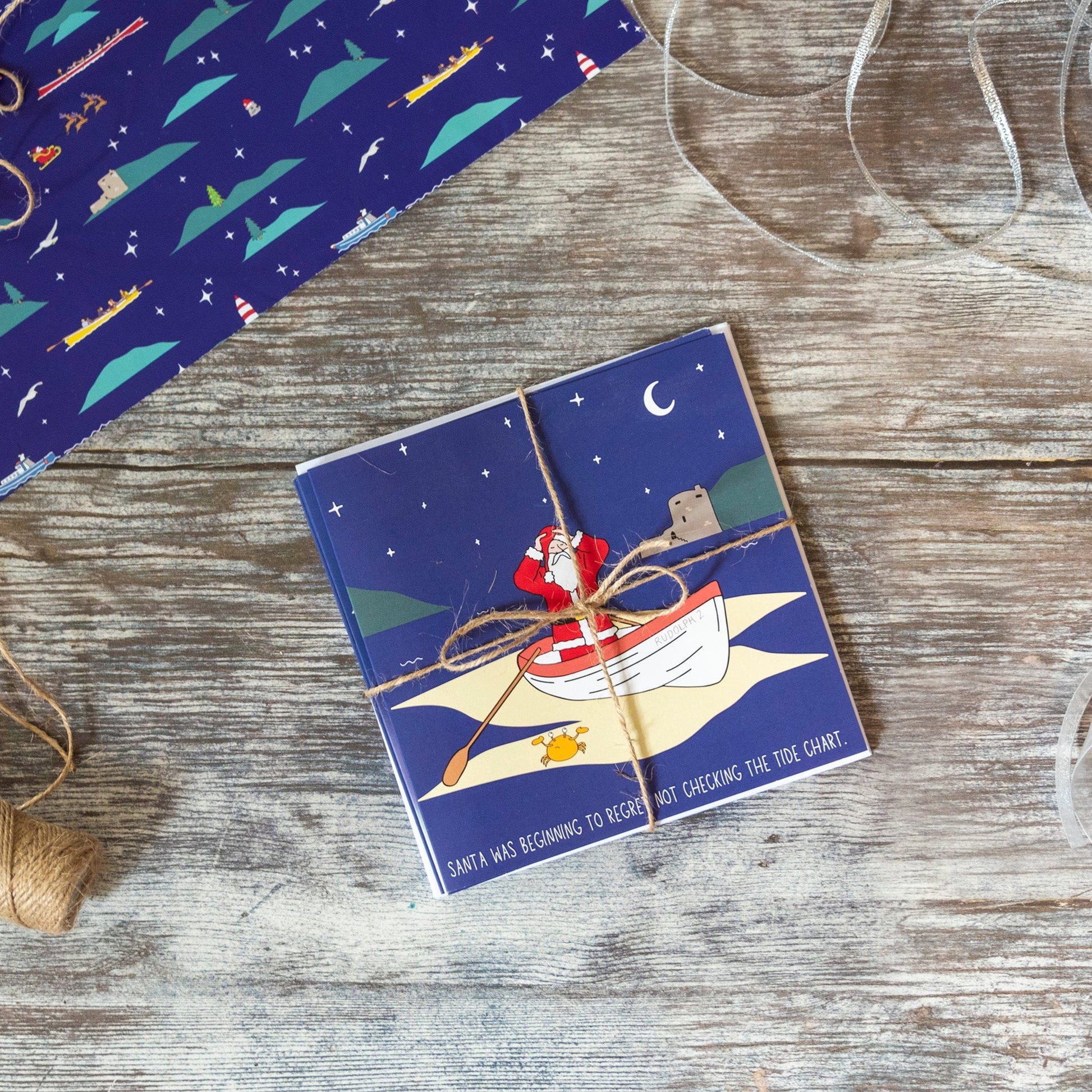Oh-So Scilly Christmas Cards - four designs featuring Santa in some very Scilly situations... if you know, you know!