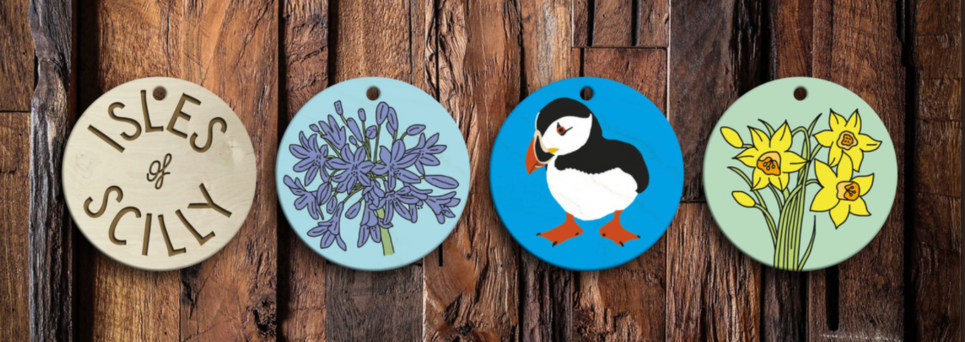 Isles of Scilly key rings made from sustainably sourced birch. Now available in 6 different designs!